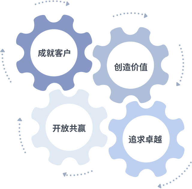成就客戶是一切決策的出發點,創造價值是衡量所有工作的標準,追求卓越是必發集團做事做人的態度,開放共贏是必發集團的格局也是最終的結果。價值觀的齒輪環環相扣,推動著組織里的每個人不斷向前。